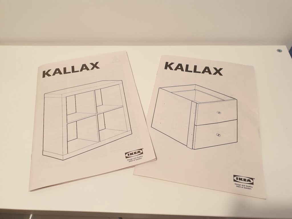 We wanted to add something to our little kitchen corner. I came up with the idea of using a 2×2 IKEA Kallax cabinet (202.758.14) and a matching drawer insert (702.866.45), assembling them in such a way that the two drawers are placed side by side.